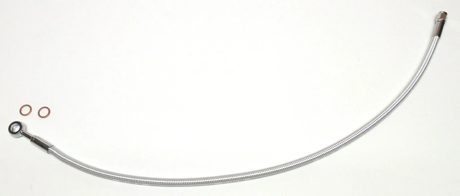 The Magnum Shielding Designer Series ABS-Specific Front Brake Line Kit is engineered for superior performance and durability. Each kit includes a direct fit lower assembly used in conjunction with alternative length upper lines. The braid color and weave perfectly match all MAGNUM control cables and brake lines, providing a seamless, custom look. Featuring a crystal-clear outer jacket, the brake line offers exceptional protection against scuffing and discoloration, maintaining its pristine appearance for years to come. Constructed with PTFE inner tubing, DuPont™ Kevlar® aramid fiber, premium Signature Magnum braids, and an outer PVC jacket, these brake lines minimize expansion and maximize braking efficiency. Assembled in the USA, this kit guarantees top-notch quality and reliability. Ensure proper fitment by carefully measuring for non-stock applications, taking into account banjo angle and upper brake line length.