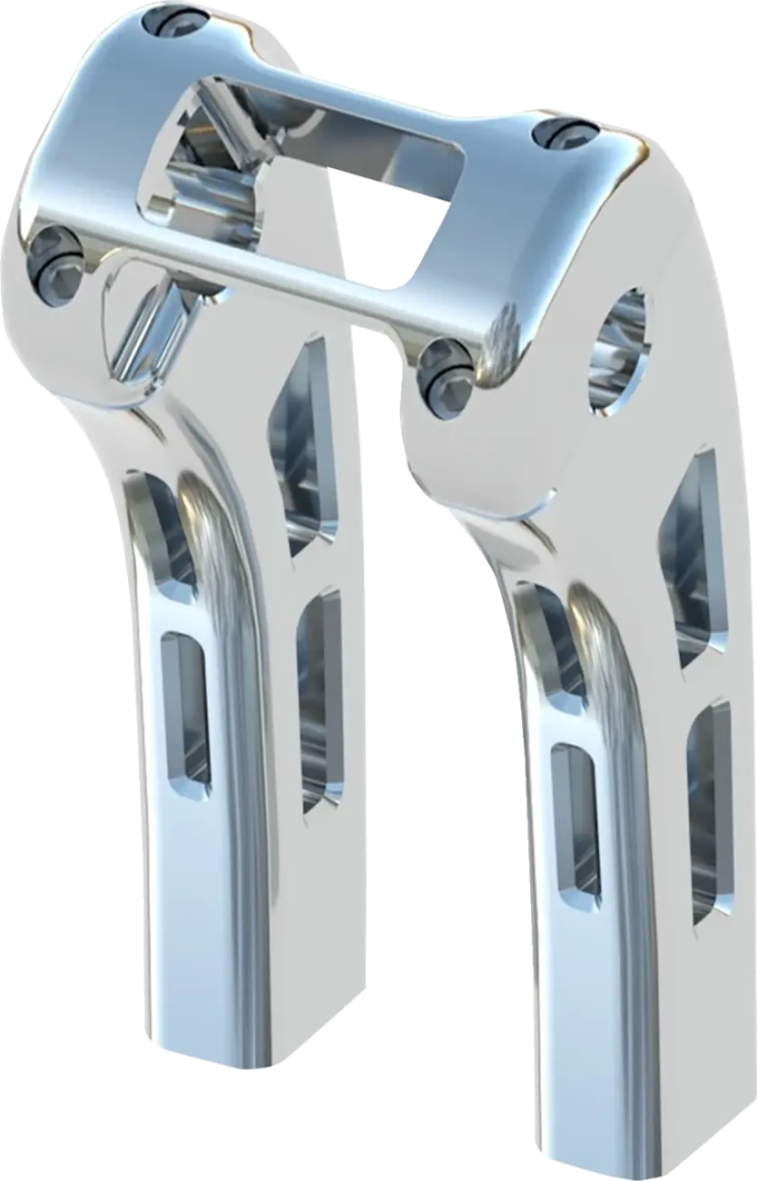 The Magnum Shielding Ghost Risers are expertly forged from robust 6061-T6 aluminum, ensuring exceptional strength and durability. Precision CNC machining provides exact fitment and flawless cosmetic detailing. The 1-1/2" pullback offers a more relaxed and comfortable riding posture, reducing fatigue on long journeys. Designed for motorcycles without batwing fairings and featuring a standard 3-1/2" fork center-to-center location, these risers provide a seamless upgrade. These chrome risers not only improve your bike's ergonomics but also add a touch of sleek style.