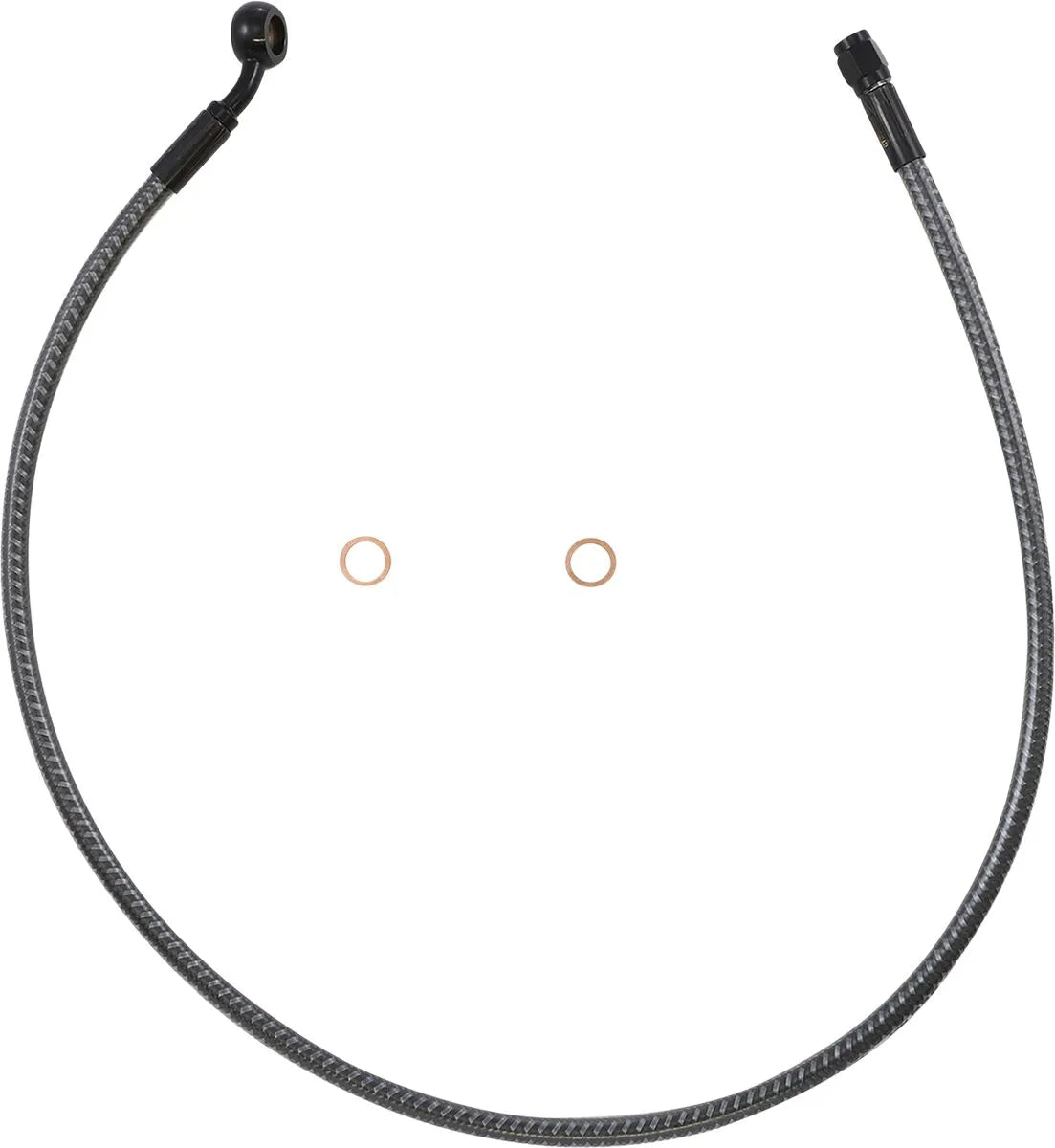 The Karbonfibr Designer Series brake lines feature a unique wire braid, created from black and gray interwoven tones that mimic the look of high-tech carbon fiber. This distinctive braid complements black or blackout color schemes, adding a touch of modern style to your ride. Manufactured with enhanced construction, these brake lines meet Harley-Davidson ABS requirements for both stock and alternate lengths. The -3AN connections and optimized banjo angles ensure easy installation and a perfect fit. The crystal-clear outer jacket offers superior protection against scuffing and discoloration, maintaining a pristine appearance. Featuring inner PTFE tubing braided with Aramid Fiber reinforcement, these brake lines minimize expansion under pressure, providing consistent and reliable braking performance. Assembled in the U.S.A.