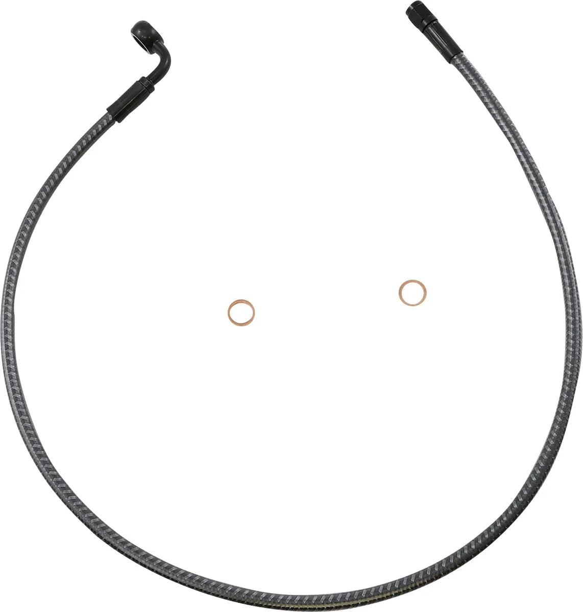 The Karbonfibr brake line features a distinctive black and gray wire braid that mimics the appearance of carbon fiber, offering a stylish alternative to traditional black braid. Designed specifically for Harley-Davidson motorcycles equipped with ABS, this kit ensures compatibility and maintains the integrity of your anti-lock braking system. The enhanced construction meets stringent ABS requirements for both stock and alternate length brake lines. With -3AN connections and meticulously polished, black chrome-plated fittings, installation is straightforward. The crystal-clear outer jacket not only protects against scuffs but also prevents discoloration, ensuring a long-lasting, pristine appearance. The inner PTFE tubing, reinforced with Aramid Fiber, minimizes line expansion, providing consistent and reliable braking performance. These brake lines are designed to follow the OE routing for ease of installation.