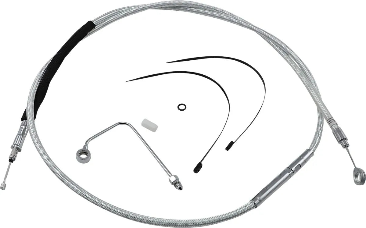 This clutch cable features a patented Sterling Chromite® II braid that seamlessly matches other Magnum control cables and brake lines, creating a cohesive and custom look. The cable is coated with a crystal-clear FEP fluoropolymer outer jacket, providing exceptional protection against scuffs and abrasions, preserving the finish of your paint or chrome. The low-effort, high-efficiency design meets or exceeds all OE specifications for fitment, construction, and endurance. All fittings are polished and chrome-plated, while the attractive adjuster features integrated water-resistant seals, eliminating the need for a boot. A rubber seal in the transmission fitting prevents fluid leaks, ensuring a clean and reliable performance. Each cable is factory lubricated for smooth, consistent, and long-lasting operation.Features & highlights