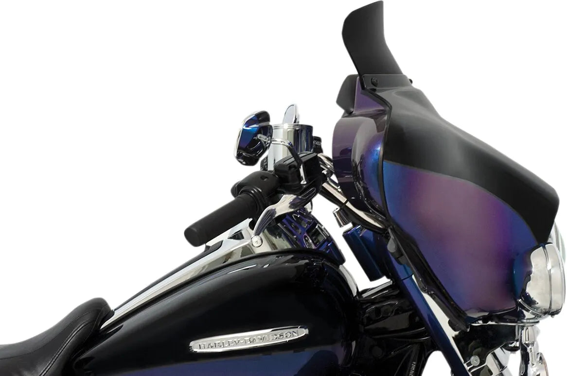 The Memphis Shades Spoiler Windshield is engineered to be looked over, deflecting the air stream and diminishing its velocity without causing disruptive turbulence. Crafted from aircraft-grade Lucite®, this windshield offers exceptional optical clarity and long-lasting durability, ensuring a clear view of the road ahead. It's designed to integrate seamlessly with your OEM hardware, guaranteeing a precise and secure fit. Proudly made in the USA, this spoiler windshield combines superior performance with premium quality. The dark smoke finish adds a touch of style while providing additional glare reduction. Easy installation and a perfect fit make this an essential upgrade for any serious rider looking for enhanced comfort and performance.