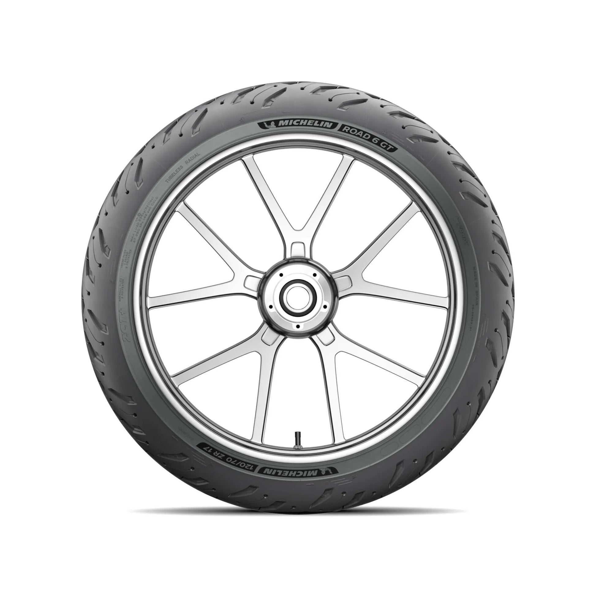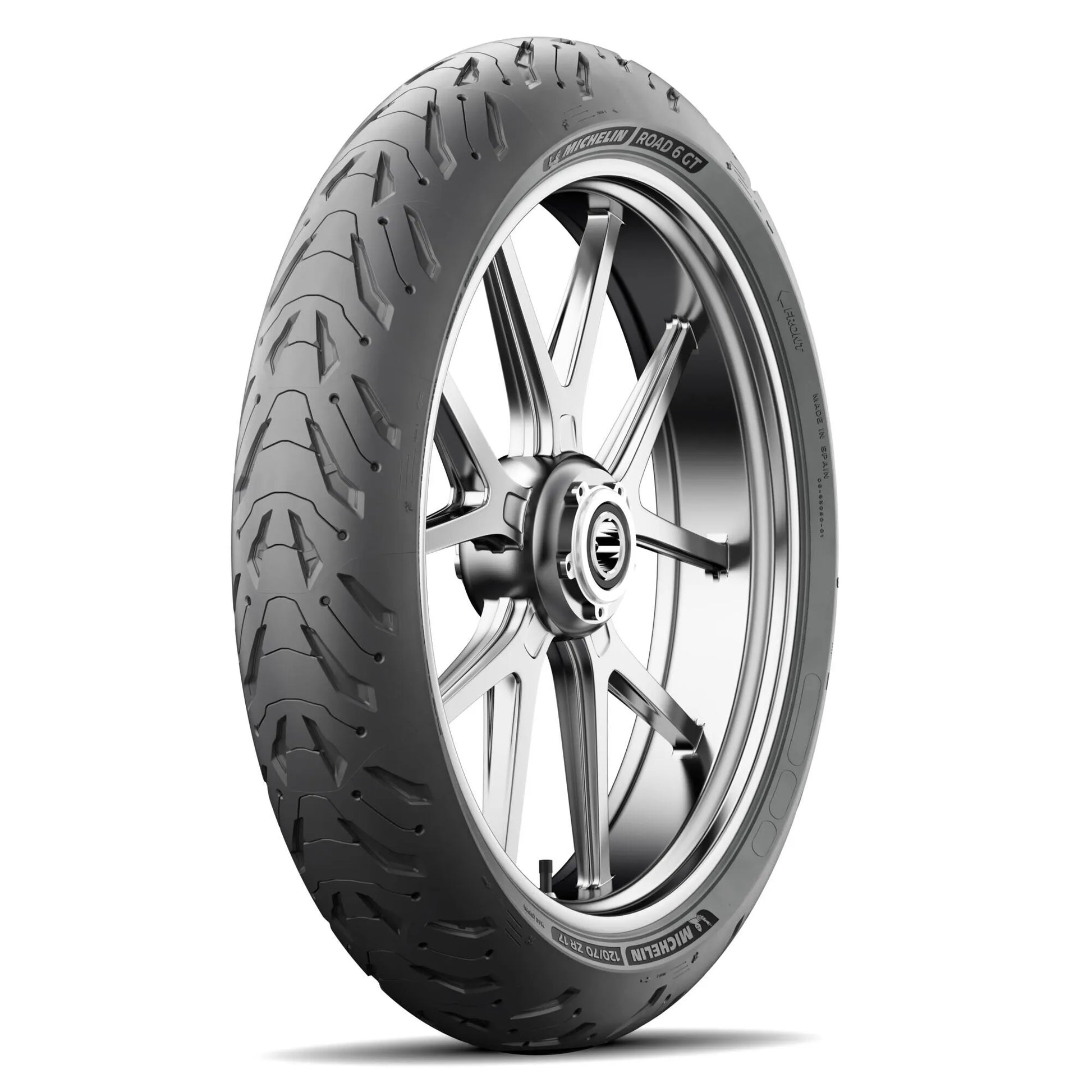 The Michelin Road 6 GT tire delivers up to 15% more grip in wet conditions compared to the Road 5, thanks to its 100% silica technology and a redesigned tread pattern. The advanced rubber compound not only enhances grip but also extends the tire's lifespan by up to 10%, letting you explore further with peace of mind. Designed as a tubeless tire, the Road 6 GT ensures modern performance and reliability for a wide range of motorcycles. The 120mm width provides excellent handling, while the ZR construction is optimized for high-speed stability. Upgrade to the Michelin Road 6 GT and feel the difference that comes from constant innovation.