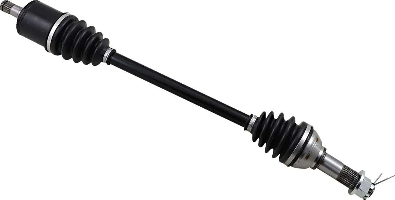 The Moose Offroad Complete Axle Assembly is engineered for exceptional strength and longevity. Built with a 4340 chrome-moly steel axle bar, this complete axle assembly features precision-ground internal components assembled with high-temperature, high load-bearing moly grease. This ensures smooth operation and reduces wear under stress. The outboard and inboard joints come fully assembled for straightforward installation. Assembled using stainless steel low-profile clamps for secure and reliable performance in all conditions, this axle provides a robust and dependable solution for your off-road needs. Includes a spindle nut and washer where applicable, simplifying the installation process. Replace your worn or damaged axle with this heavy-duty, complete assembly and get back on the trail with confidence.