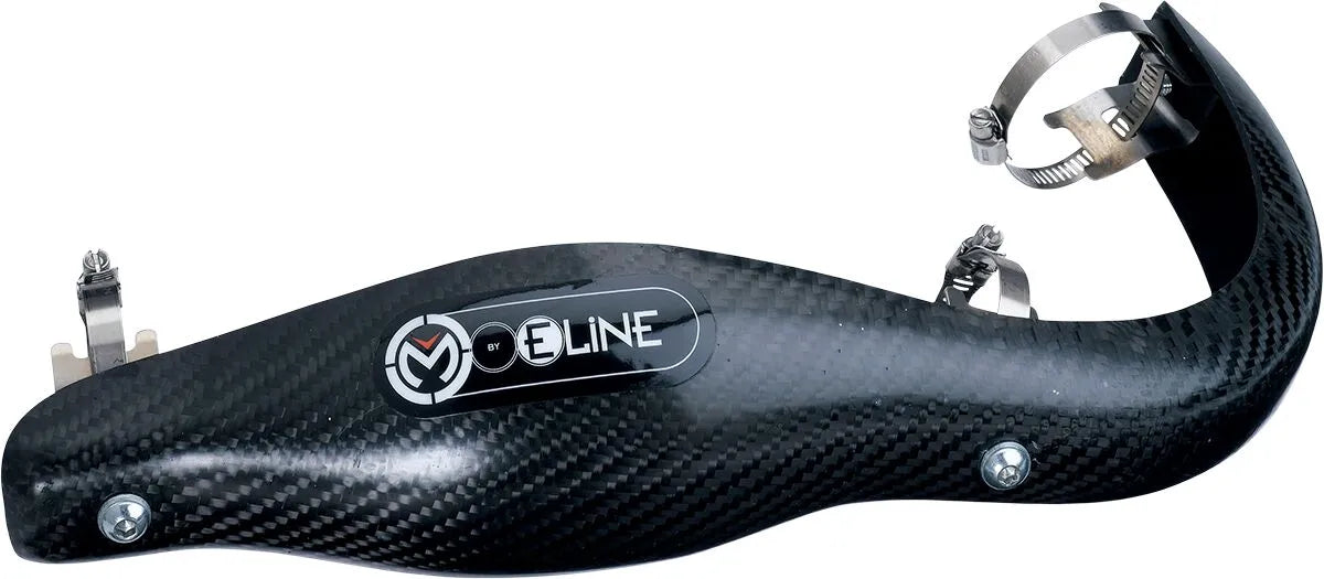 The Moose Offroad E Line 4-Stroke Pipe Guard is engineered to withstand the rigors of off-road riding. Constructed from a high-strength composite of carbon fiber, anti-ballistic materials, fiberglass, and high-temperature resins, this pipe guard provides exceptional durability. Its lightweight design boasts 75% greater tensile strength than aluminum, ensuring maximum protection without adding unnecessary weight. This pipe guard shields your exhaust pipe from power-robbing dents, while also increasing horsepower by elevating gas flow temperatures. Enjoy enhanced performance and extended exhaust system life with the Moose Offroad E Line Pipe Guard. Easy to install and designed for a precise fit, it's the ultimate upgrade for any serious rider. Protect your 4-stroke pipe with confidence using this high-quality, performance-enhancing guard.