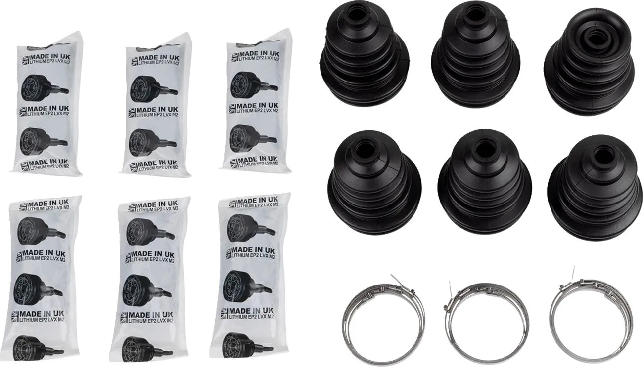 Kit includes one boot, 80 grams of grease, and two clamps with detailed instructions. Clamp installation tool is NOT included.