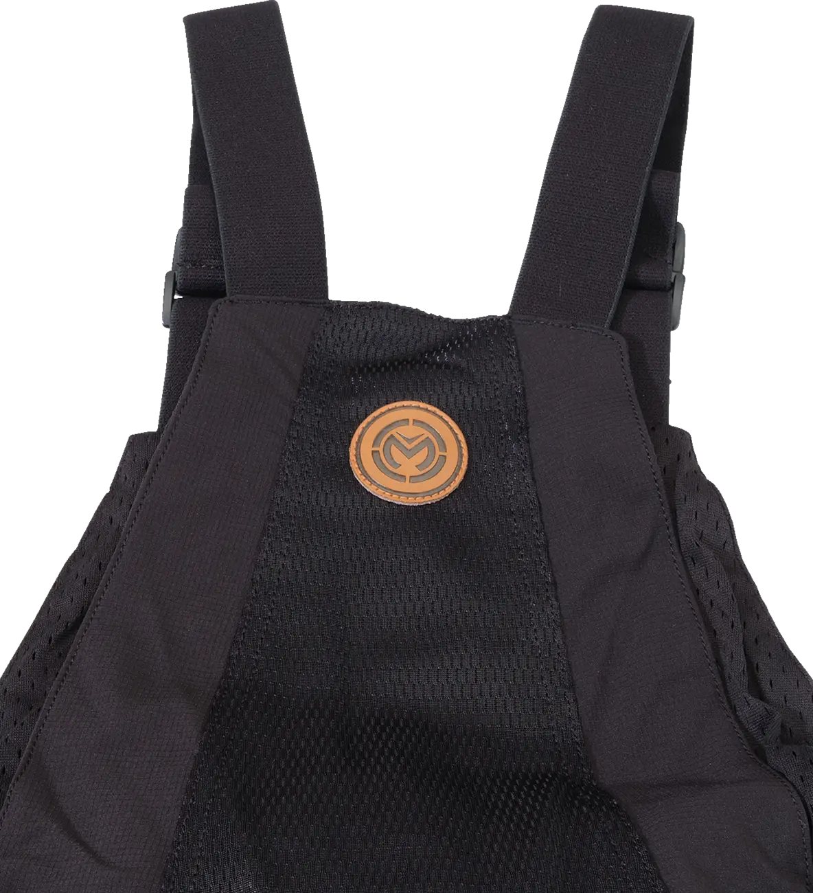 - Stretch panels in the rear yoke and above the knees maximize mobility and comfort.