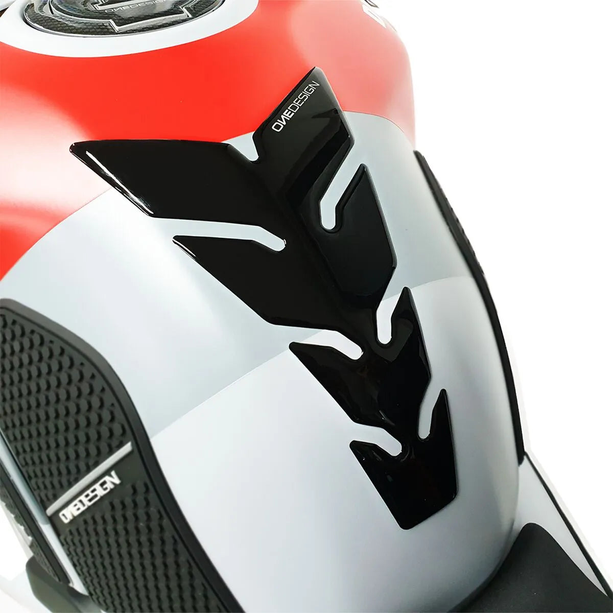 The Onedesign tank pad is expertly molded from high-quality resin and features a self-adhesive backing for easy and secure installation. It provides a robust barrier against damage from buckles, zippers, and other potential sources of scratches. Its soft-touch finish enhances the look of your motorcycle while delivering essential protection where it matters most. Protect your investment and maintain the pristine condition of your fuel tank with this simple yet effective accessory. The universal design allows for easy installation on almost any bike, providing peace of mind and long-lasting protection.