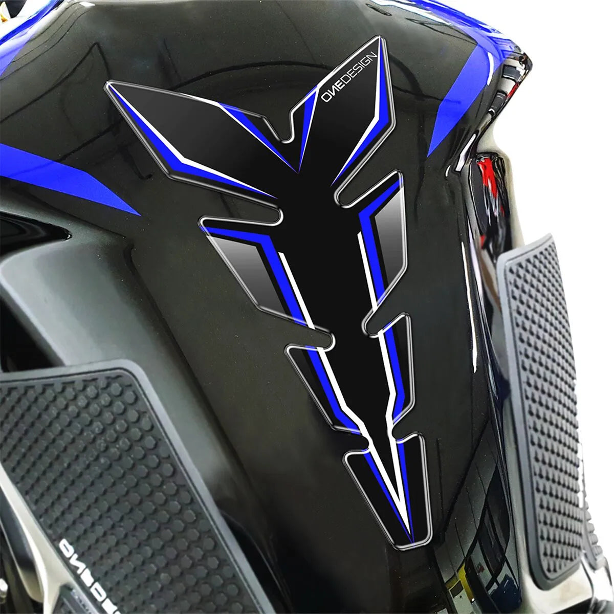 The Onedesign tank pad is meticulously crafted from high-quality resin and features a soft-touch finish, providing both protection and a premium feel. Its primary function is to shield your fuel tank from potential damage caused by buckles, zippers, and other abrasive objects. The self-adhesive backing ensures a secure and straightforward installation process. Designed to fit sport bikes, touring bikes, and road bikes, this tank pad offers versatile protection without compromising on aesthetics. Available in black and blue, it seamlessly integrates with your motorcycle's design, enhancing its overall look while preserving its value. Installation is easy, providing immediate protection.