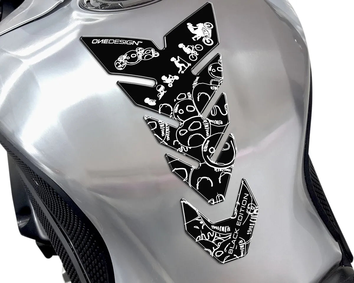 The Onedesign Tank Pad is molded from high-quality resin, providing excellent durability and a sleek, soft-touch finish. The self-adhesive backing ensures easy and secure installation, keeping the pad firmly in place even under demanding riding conditions. Not only does it protect your tank from unsightly scratches and scuffs, but it also adds a touch of personalization to your motorcycle. Choose from a wide array of designs to match your bike's aesthetics and showcase your individual style. The universal fit ensures compatibility with most motorcycle models, making it a versatile and essential addition to any rider's gear.