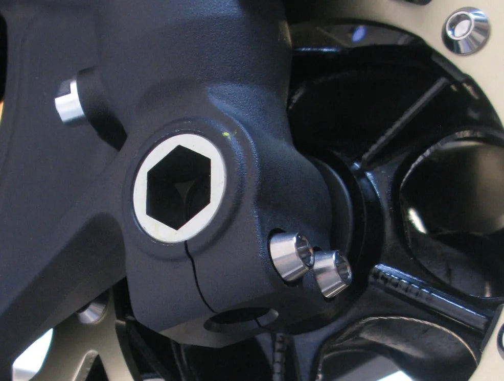 The Pro Bolt Stainless Steel Front Axle Pinch Bolt Kit is CNC machined from high-grade A316 stainless steel, ensuring exceptional strength and a flawless finish. Designed to complement other stainless steel components like fork clamp bolts, front axle nuts, and disc rotor bolts, this kit offers a cohesive and stylish appearance. The polished finish adds a touch of elegance to your motorcycle while providing excellent corrosion resistance, ensuring longevity and reliability even in harsh conditions. Easy installation means you can quickly upgrade your bike without the need for specialized tools or professional assistance. Enhance both the performance and visual appeal of your motorcycle with this premium bolt kit.