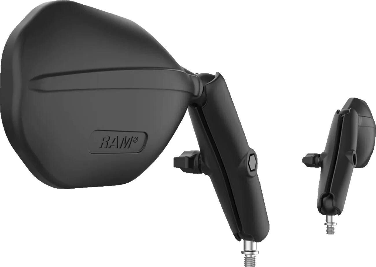 The Ram Mounts Tough-Mirror™ Kit with M10-1.25 Bases is engineered for durability and maximum visibility. Constructed from powder-coated, marine-grade aluminum, stainless steel, and high-strength composite materials, this kit withstands the harshest conditions. The double ball and socket technology offers near-infinite adjustability and effective vibration damping, allowing you to fine-tune your mirror position for optimal viewing. This kit includes everything needed for a secure and versatile mounting solution. The mirrors provide a wide and clear field of view, enhancing safety and awareness on and off the road. Installation is straightforward, providing a robust and reliable upgrade to your vehicle's mirror system. Enjoy the peace of mind that comes with using 100% genuine Ram Mounts components, backed by a lifetime warranty.
