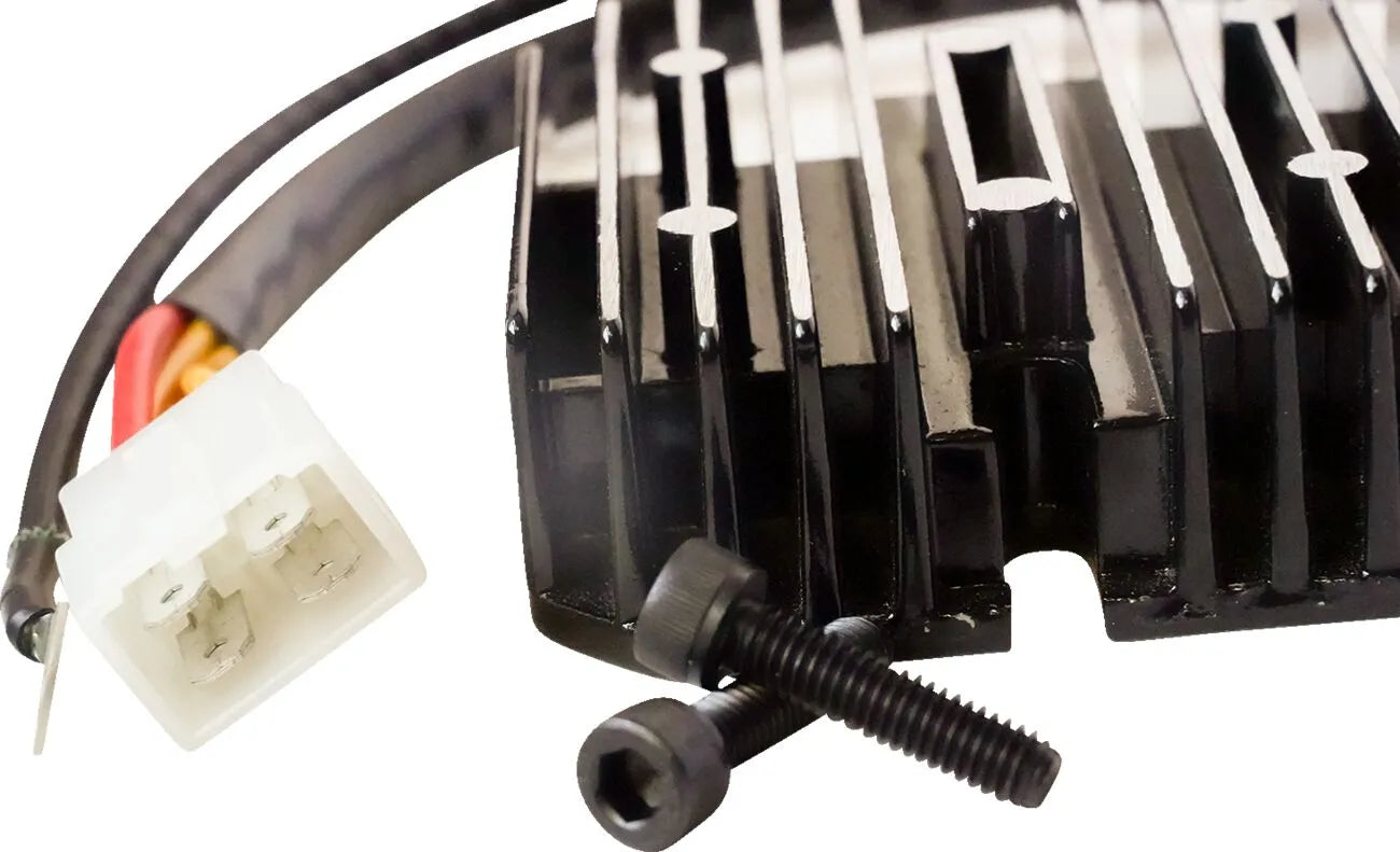 Upgrade your motorcycle's charging system with the Rick's Motorsport Electric Hot Shot Rectifier Regulator, specifically designed for Lithium-Ion batteries. This rectifier regulator ensures optimal performance and longevity for your high-performance battery, providing a stable and reliable power supply.