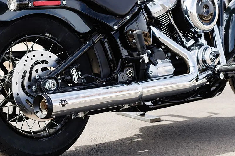 The S&S Cycle Grand National Slip-On Muffler features a race-inspired design with a 4" outer diameter muffler body, ensuring both performance and style. The Grand National® end cap adds a touch of classic flair to your motorcycle. Engineered to meet J2825 sound levels, this muffler provides an aggressive sound without exceeding legal limits. Crafted from high-quality stainless steel with a chrome finish, the Grand National Slip-On Muffler offers exceptional durability and a sleek appearance. Designed as a slip-on replacement for your stock muffler, installation is straightforward with all necessary hardware included. Upgrade your motorcycle with this American-made muffler and experience the legendary S&S Cycle performance.