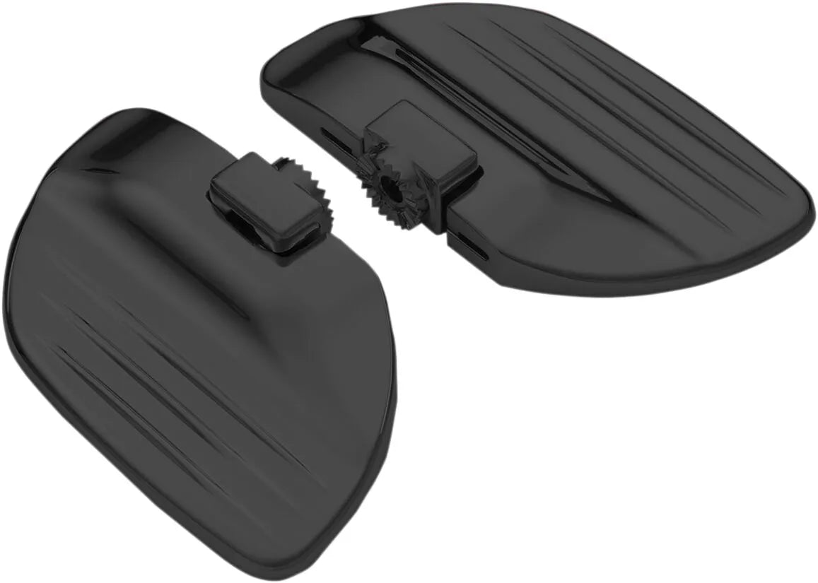 The Show Chrome Commander Driver Floorboards are engineered for comfort and performance. Measuring a generous 6-1/4" x 4", these billet aluminum floorboards offer ample space and support for your feet. The non-slip rubber surface provides excellent grip, even in wet conditions. The innovative, copyrighted anti-rotation locking system allows precise angle adjustment, ensuring optimal riding comfort, and once set, it remains securely in place. These floorboards are finished in black for a sleek, custom look that complements any motorcycle. Enhance your control and reduce fatigue with these high-quality driver floorboards.