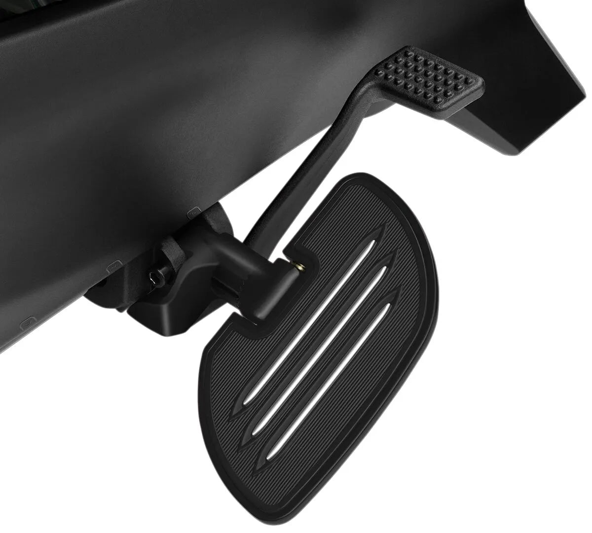 The Show Chrome Driver Floorboard Kit allows for customized positioning tailored to your individual preferences, ensuring optimal comfort and reducing fatigue during long rides. The innovative, copyrighted anti-rotation locking system lets you set the perfect angle, guaranteeing it stays securely in place. The spacious 6.25" (15.88 cm) x 4" (10.16 cm) floorboard features a non-slip rubber surface, providing excellent grip and stability in all weather conditions. Easy to install, these floorboards directly replace your OEM driver mounts, offering a seamless upgrade for enhanced comfort and control. Made from durable billet aluminum with a sleek black finish, these floorboards not only enhance your ride but also add a touch of style to your Can-Am.