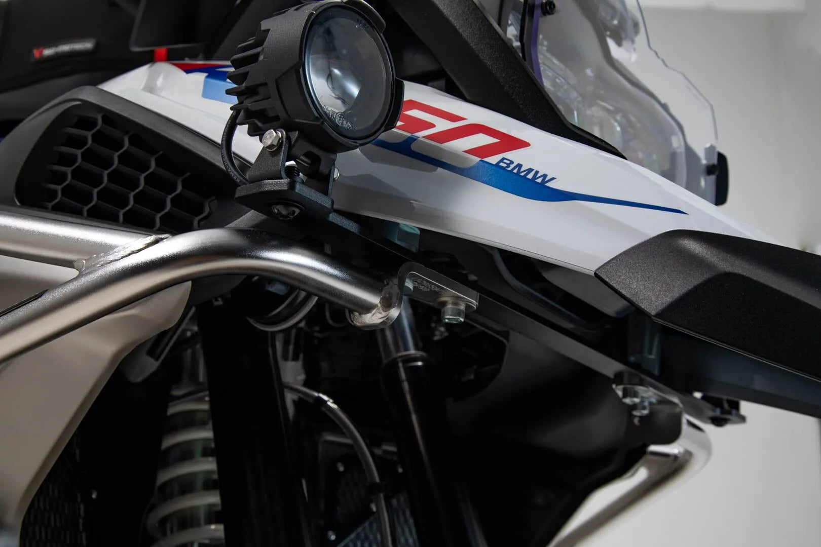The Sw-Motech Light Mounting Kit offers a straightforward and robust method for installing auxiliary lights on your motorcycle. Bike-specific engineering guarantees a flawless fit, utilizing existing mounting points for a clean and professional appearance. The high-quality powder coating provides excellent corrosion resistance, ensuring long-lasting durability even in harsh riding conditions. This kit allows you to easily mount driving lights, enhancing visibility and safety during nighttime or adverse weather conditions. With precise engineering, the light mounting kit perfectly integrates with your bike's aesthetics, while offering a secure and stable platform for your lights. Simple installation, rugged construction, and a sleek design make this kit an essential upgrade for any serious rider.