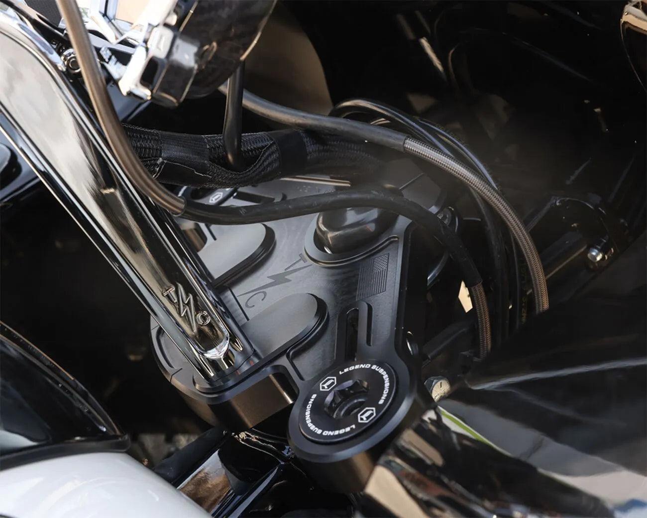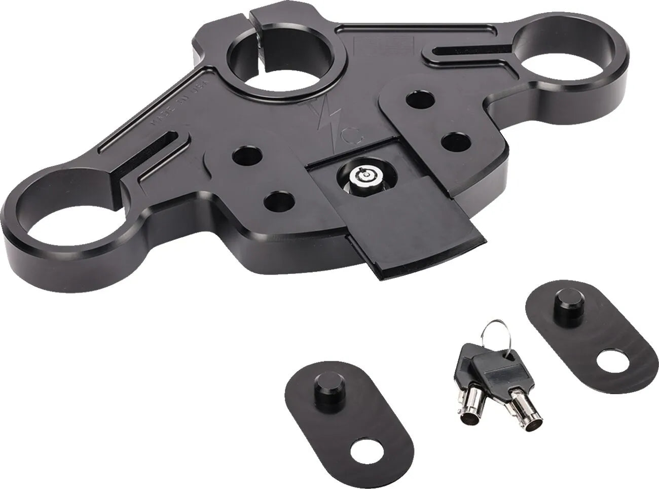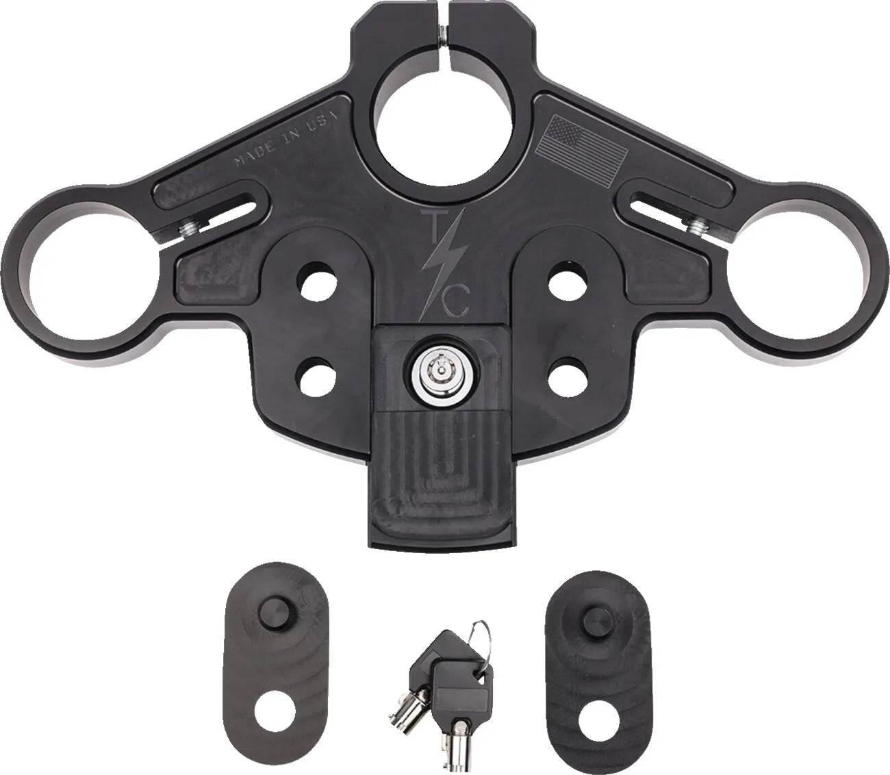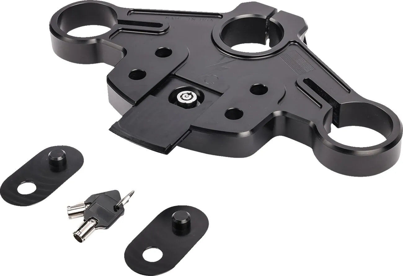 The Thrashin Supply Co. Road Glide Top Tree enhances your riding experience by offering two bolting locations for risers: the stock location and a position 1.35" closer to the rider. This allows you to fine-tune your handlebar position for optimal comfort and control. A unique concealed lock, hidden under a spring-loaded door, adds a touch of security and sleek design. This top tree is engineered for performance and aesthetics, ensuring your bike stands out while providing a superior ride. Its 6061-T6 aluminum construction guarantees durability and reliability, making it a worthwhile investment for any Road Glide enthusiast. The black finish adds a touch of style while blending in with the look of your bike.