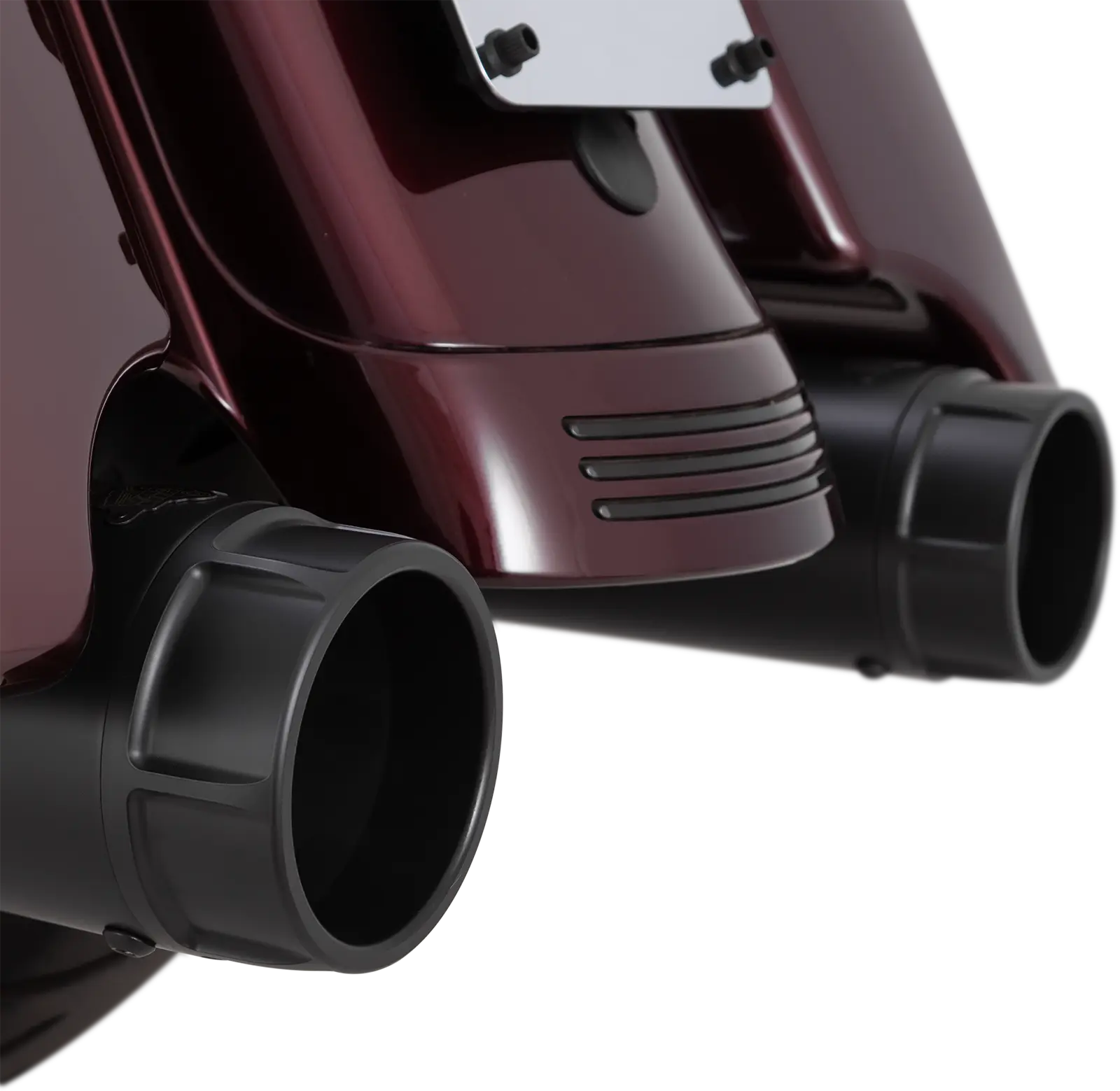 - The massive 4.5" muffler bodies deliver a bold and aggressive look.