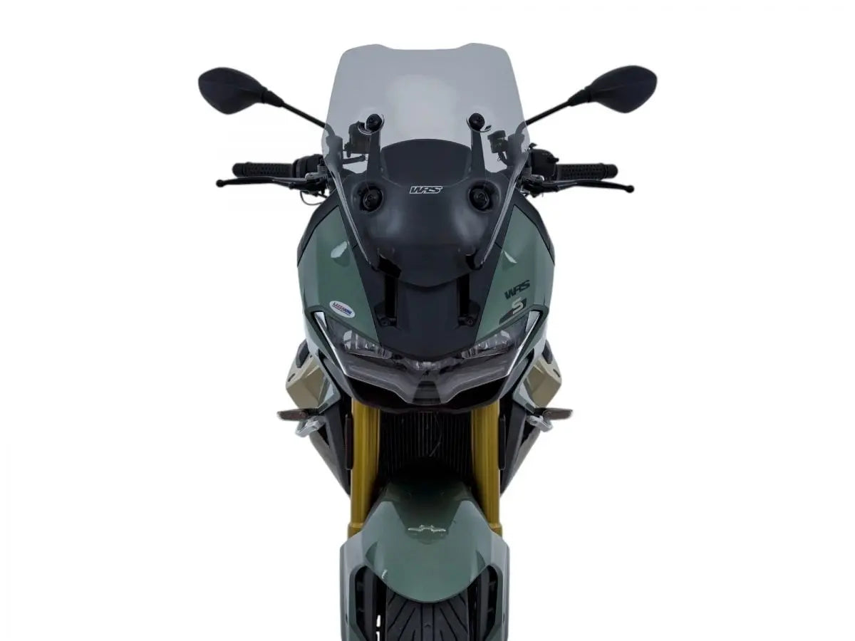 The WRS Touring Windscreen is crafted from high-quality, 3 mm thick material, ensuring maximum resistance and transparency while adhering to the strictest safety standards. Its carefully designed shape integrates seamlessly with the bike's aesthetics, enhancing its overall appearance. Compared to the original windshield, the WRS Touring Windscreen is 2 cm taller and 1 cm wider on each side, offering significantly improved protection. This additional coverage effectively eliminates annoying helmet turbulence and reduces air exposure to the shoulders, providing a more comfortable ride. Integrated deflectors further minimize air reaching the arms and hips of both the rider and passenger. Installation is straightforward, allowing you to quickly experience the benefits of this premium touring windscreen.