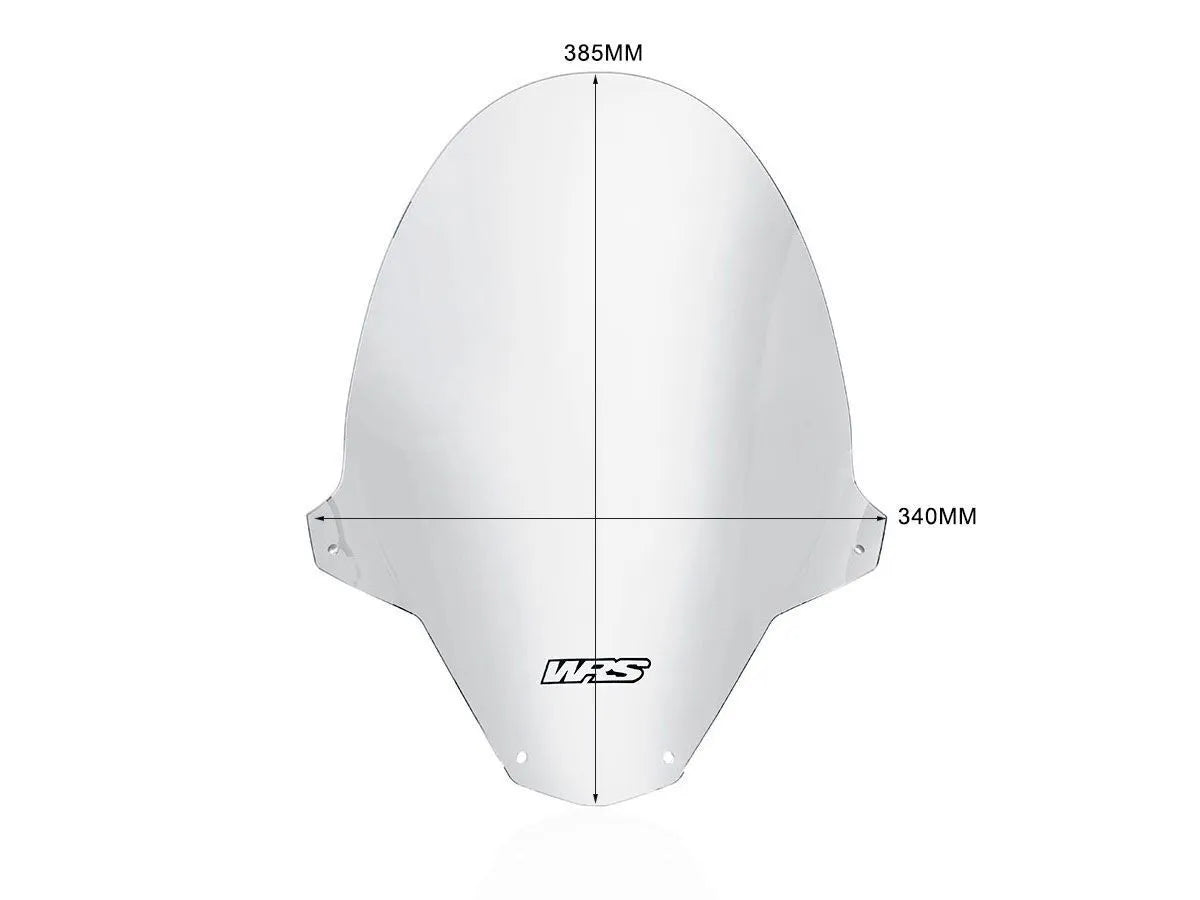 The WRS Windscreen is designed to eliminate annoying turbulence around your shoulders and helmet, providing a smoother and more enjoyable ride. Its carefully engineered shape seamlessly integrates with your bike's lines, enhancing its overall appearance while delivering superior wind protection. Measuring 38.5 cm (15-1/4") in height and 34 cm (13-3/8") in width, with a thickness of 3 mm (1/8"), this clear windscreen is specifically designed for naked bikes. Experience the perfect blend of form and function, adding both style and practicality to your motorcycle. Easy to install and built to last, the WRS Windscreen offers a transformative upgrade for any rider seeking enhanced comfort and a sleeker look.