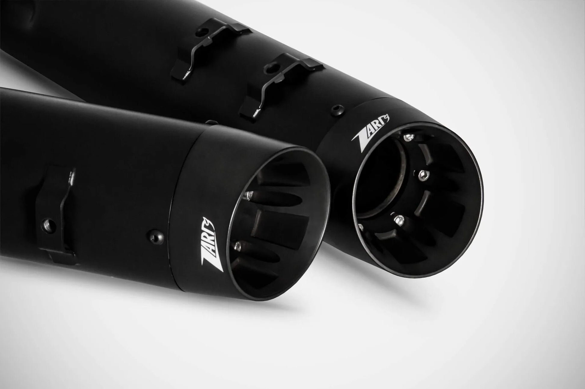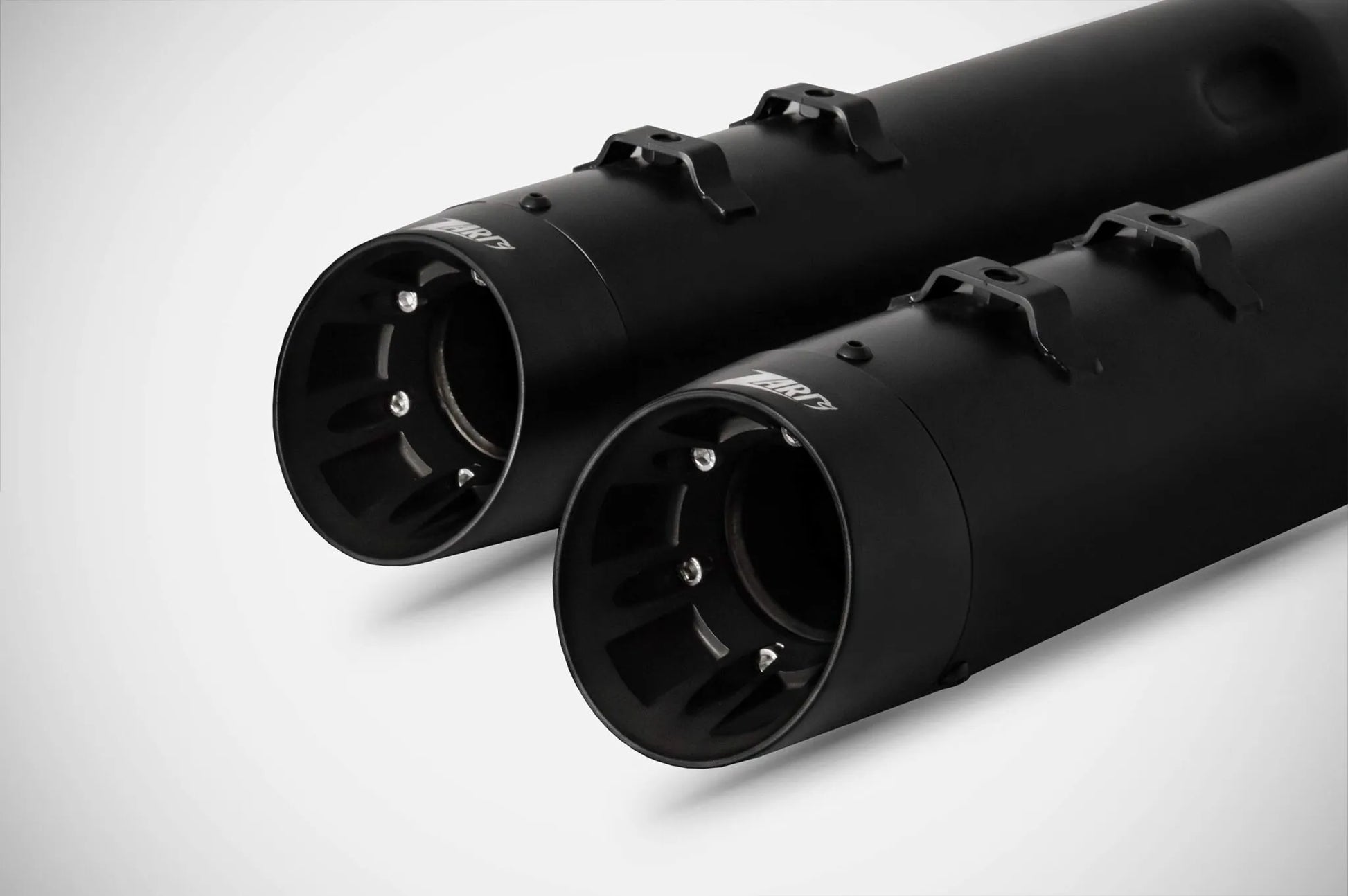 Upgrade your Harley-Davidson Touring motorcycle with the Zard 4.33" Slash-Cut Slip-Ons Muffler. These mufflers deliver a deep, resonant sound and enhanced aesthetics with their distinctive slash-cut end caps and matte black finish. Experience improved performance and a custom look that sets your bike apart.