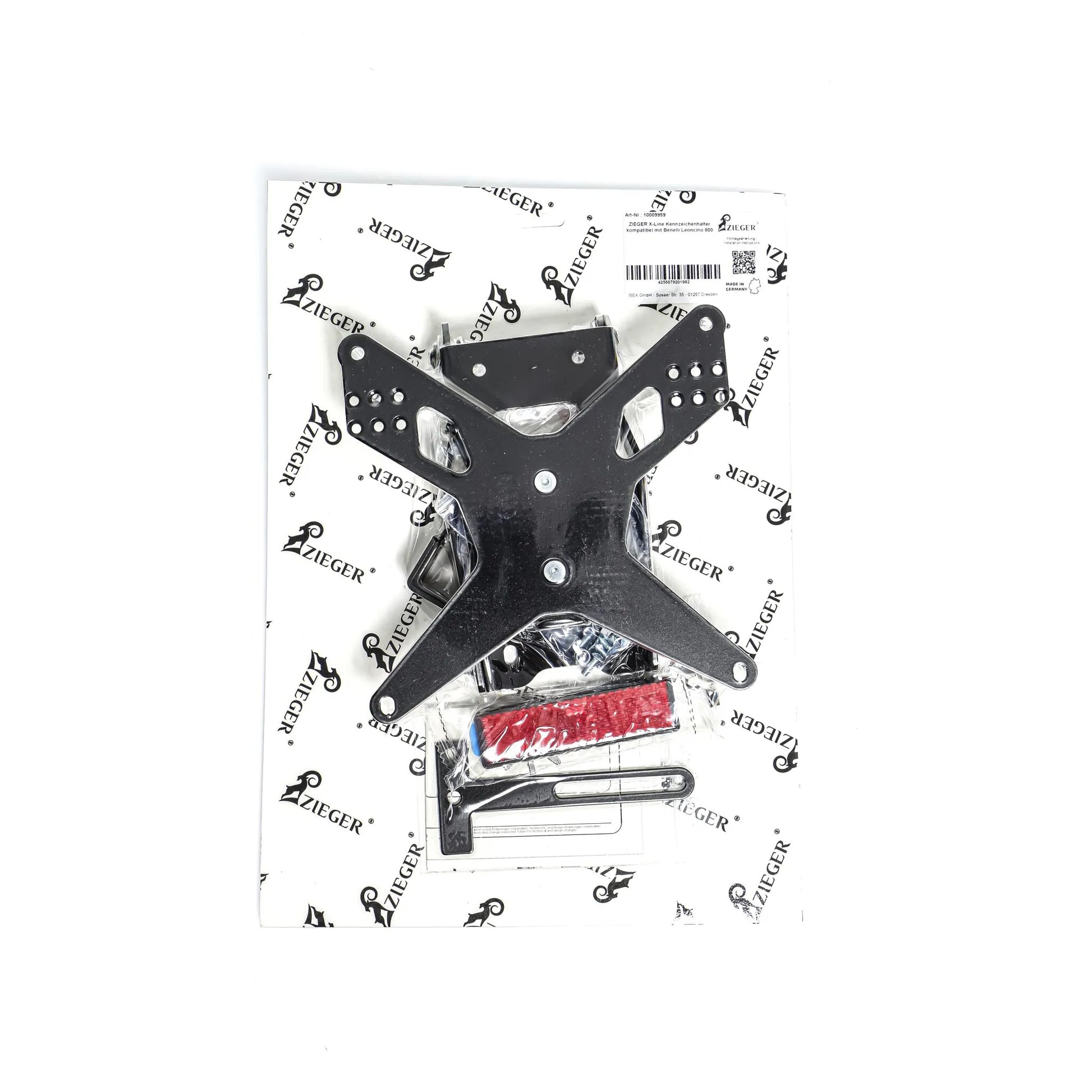 The Zieger License Plate Holder Type E is engineered to provide a superior fit and finish. No modifications to cladding parts are necessary, making installation straightforward. This holder accommodates all standard license plates up to 175 mm in width. Its black powder-coated finish not only adds a stylish touch but also provides excellent corrosion resistance. The angle of inclination is fully adjustable, allowing you to customize the look to your preference. With adjustable blinker holders offering three positions, you can achieve the perfect placement for optimal visibility. The countersunk screw heads ensure a flush and secure mounting of the license plate.